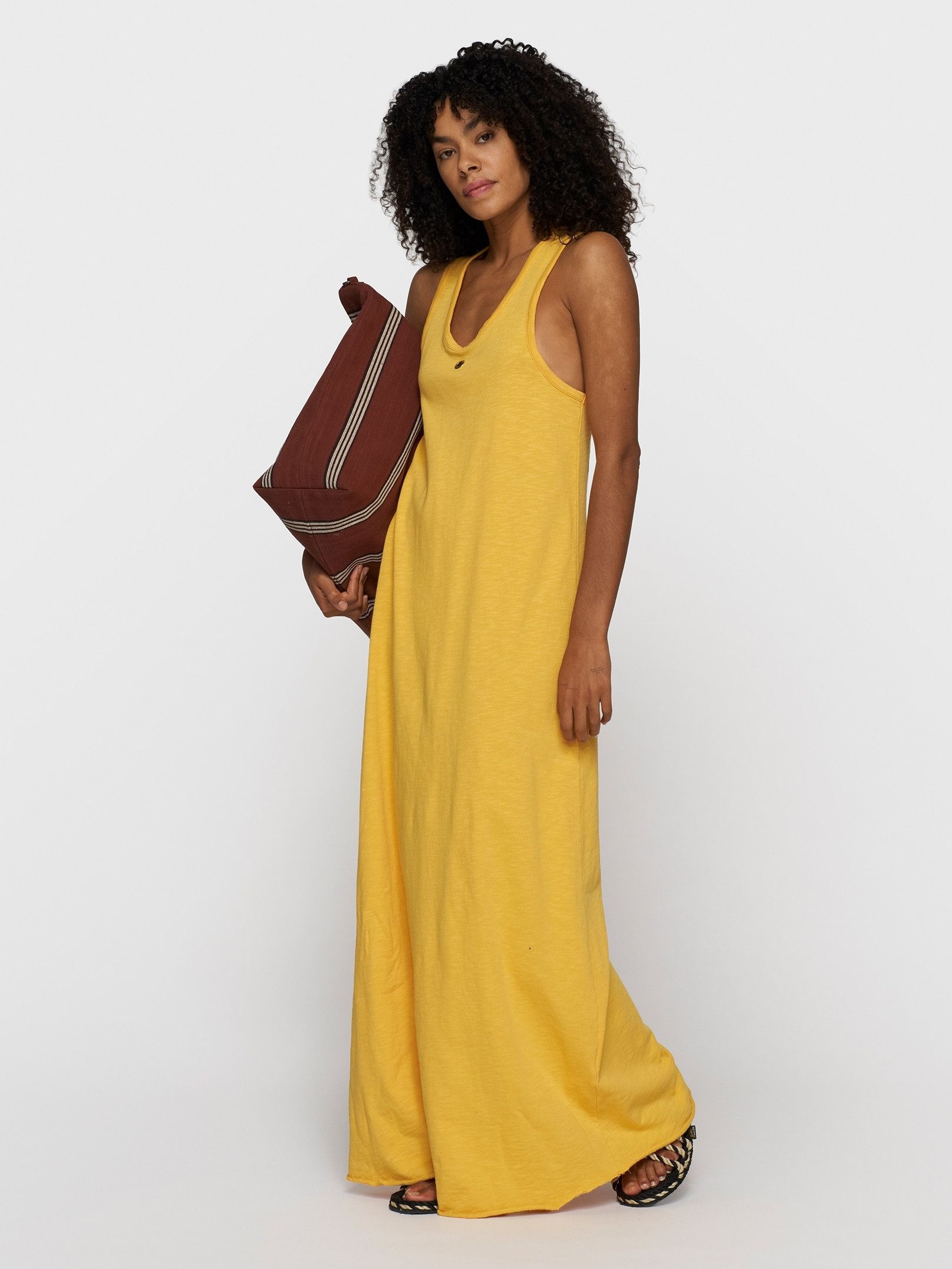 - Het model is 1.75m lang en draagt maat XS