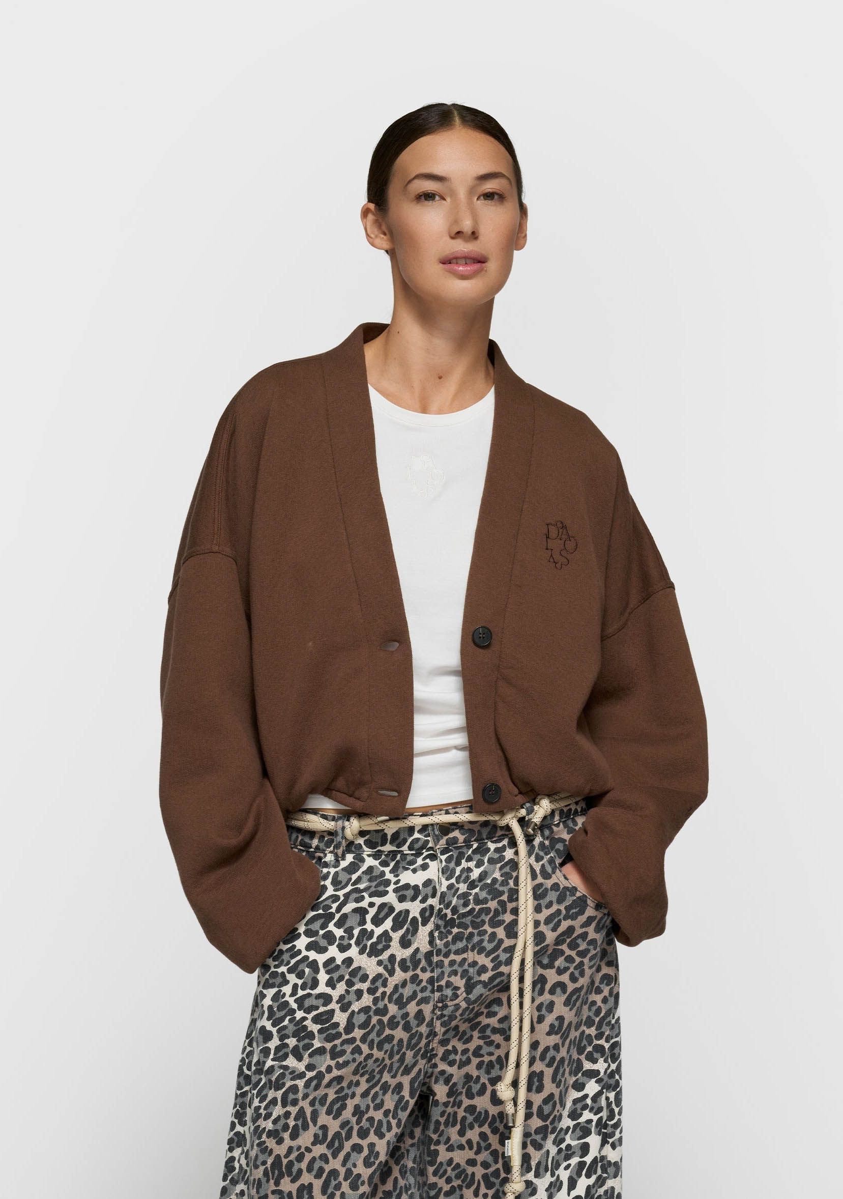 cropped baseball cardigan
