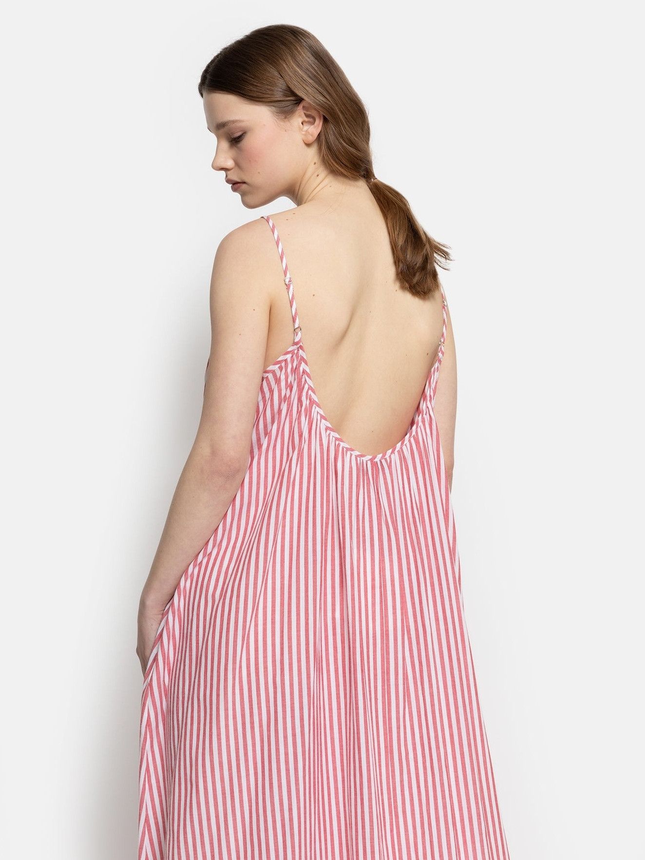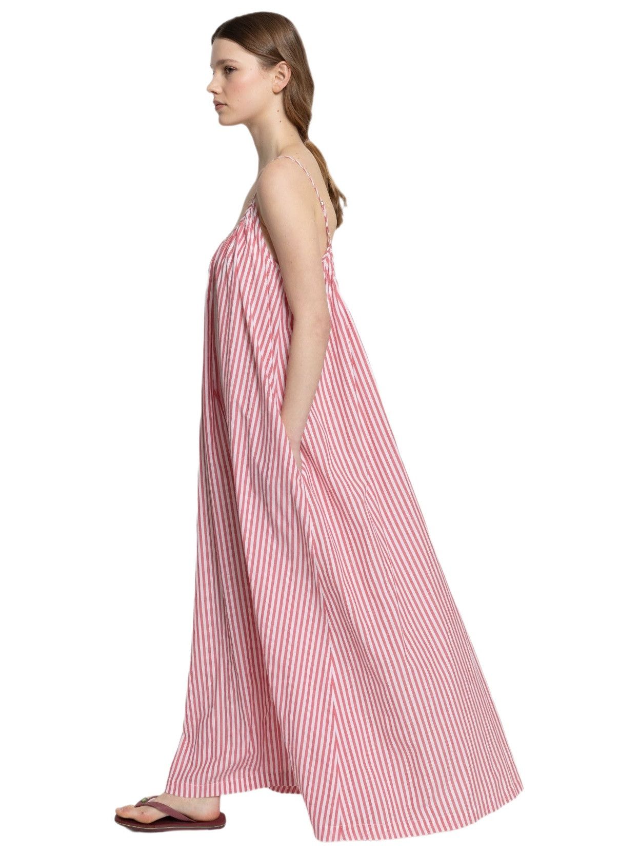 NOSTALGIE RED WHITE STRIPED SLEEVELESS DRESS
