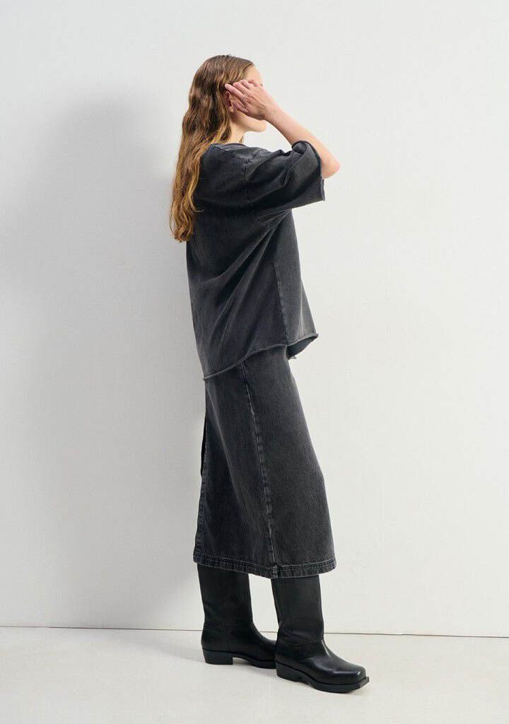 - Het model is 1.76m lang en draagt maat S