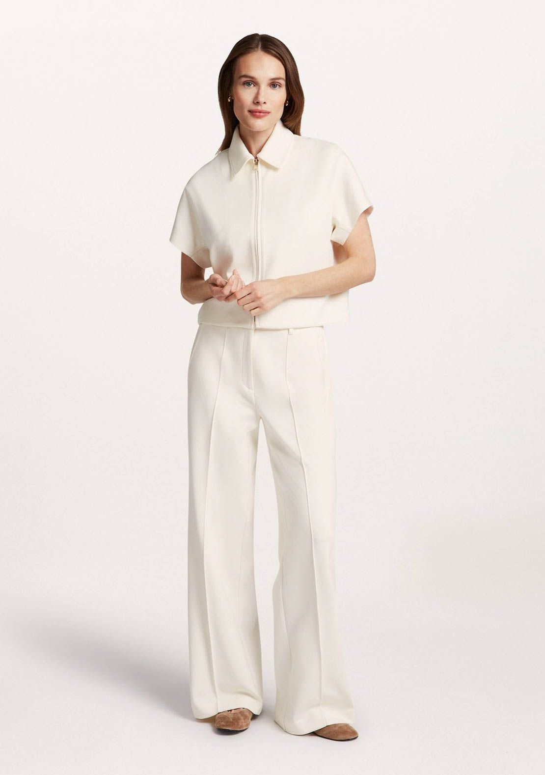 - Het model is 1.76m lang en draagt maat 36