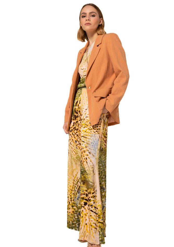 - Het model is 1.76m lang en draagt maat 36