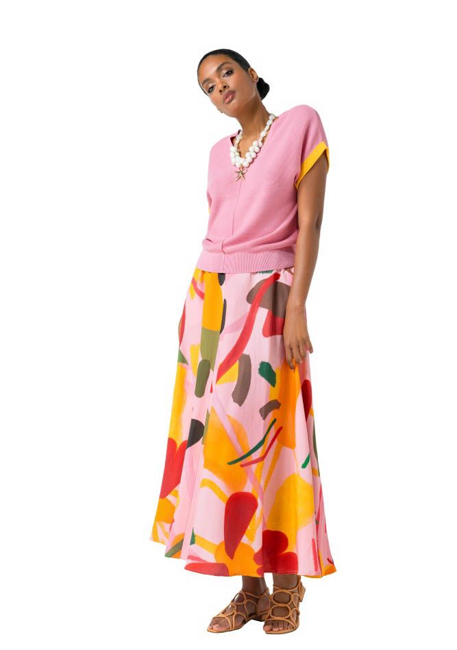 - Het model is 1.76m lang en draagt maat 36