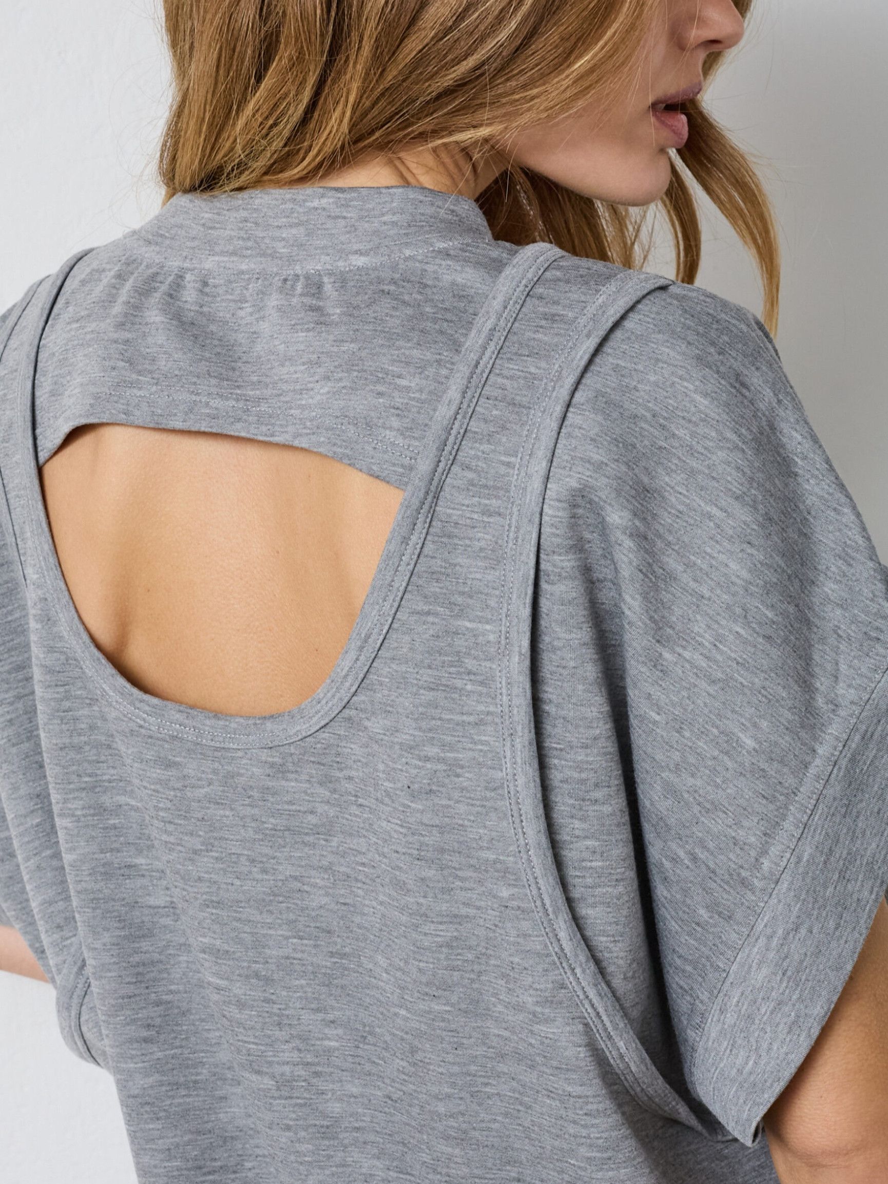 - Het model is 1.76m lang en draagt maat S