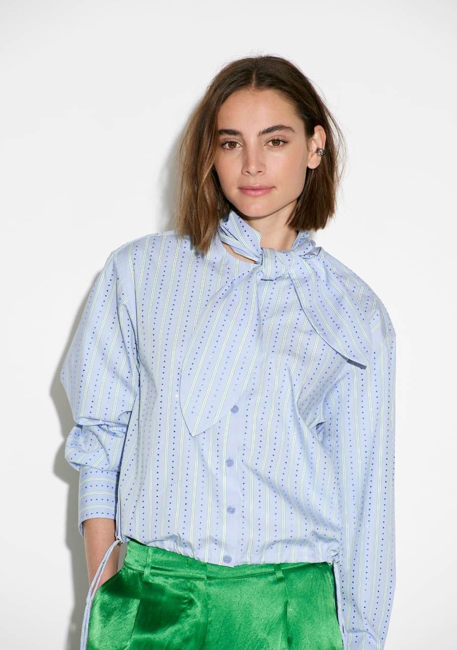 - De blouse heeft aan beide zijde een aansnoerkoord waardoor je kunt spelen met de pasvorm