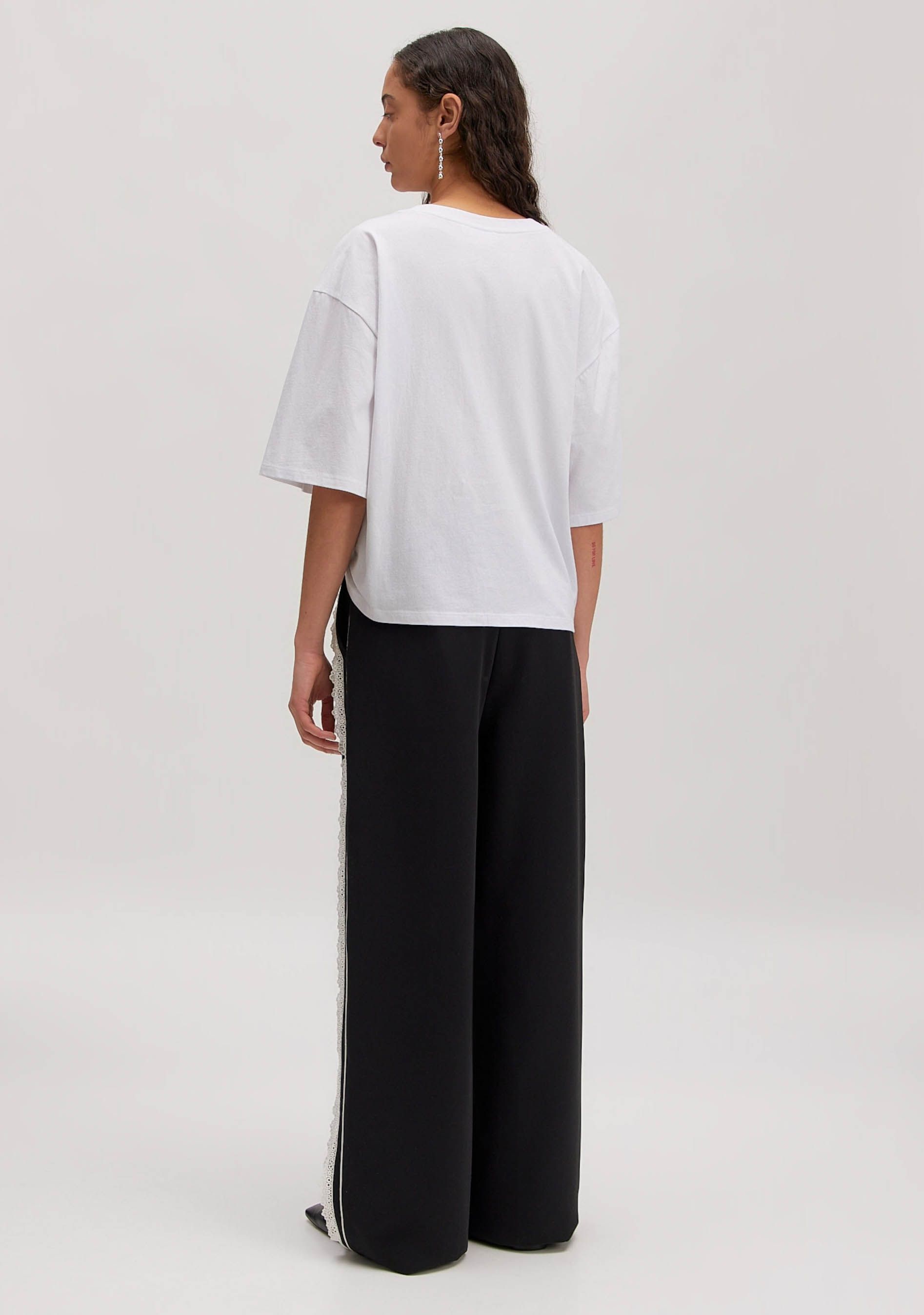 - Het model is 1.76m lang en draagt maat 36