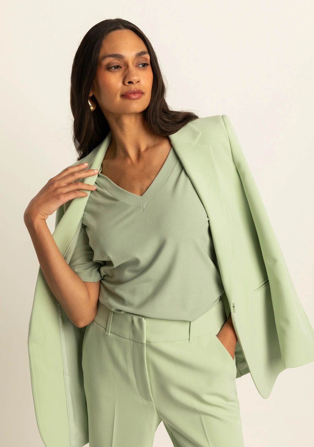 | Stofsamenstelling | 80% Polyester / 16% Viscose / 4% Elastaan / 100% Voering Polyester |
