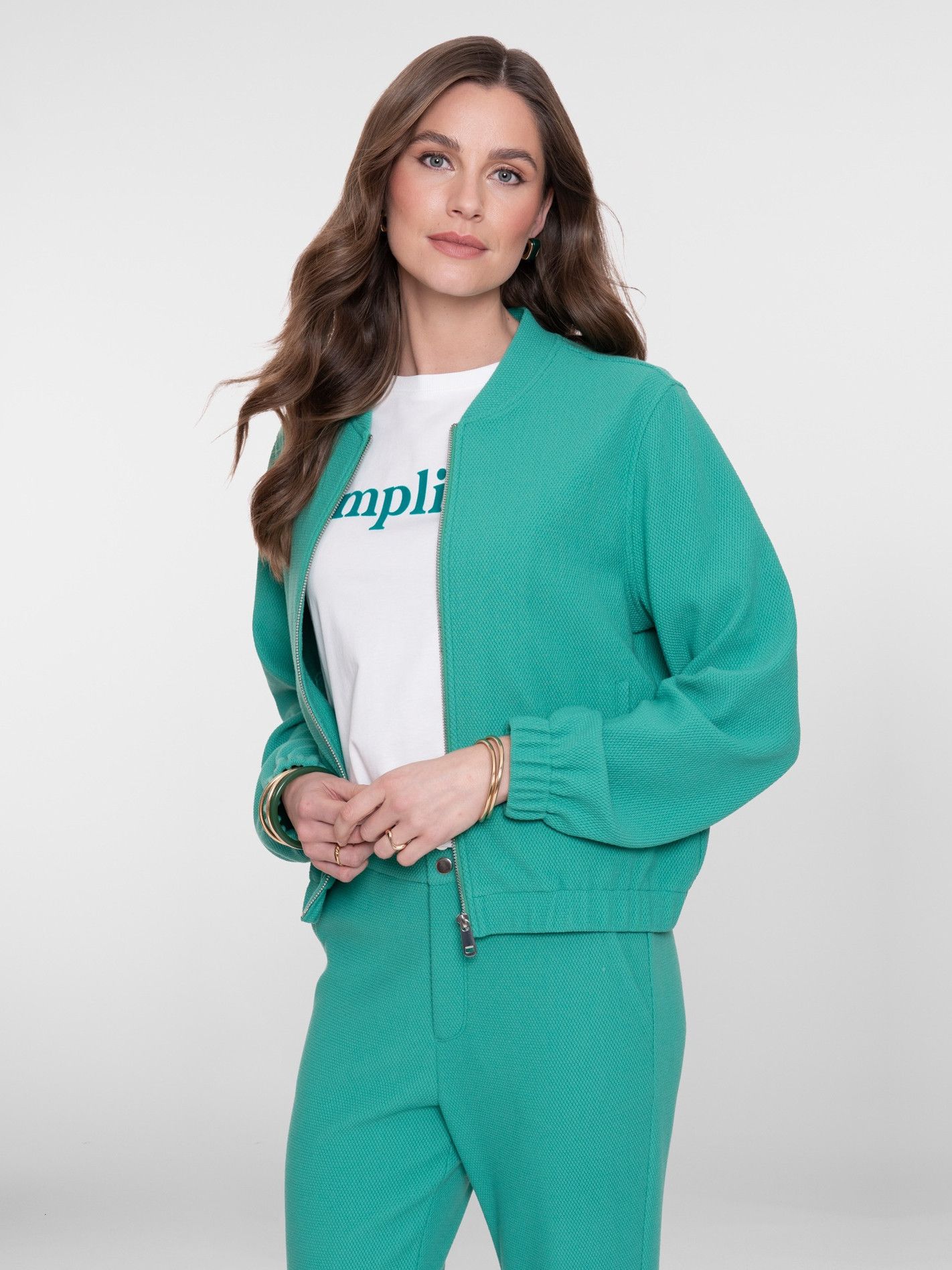 - Het model is 1.76m lang en draagt maat S