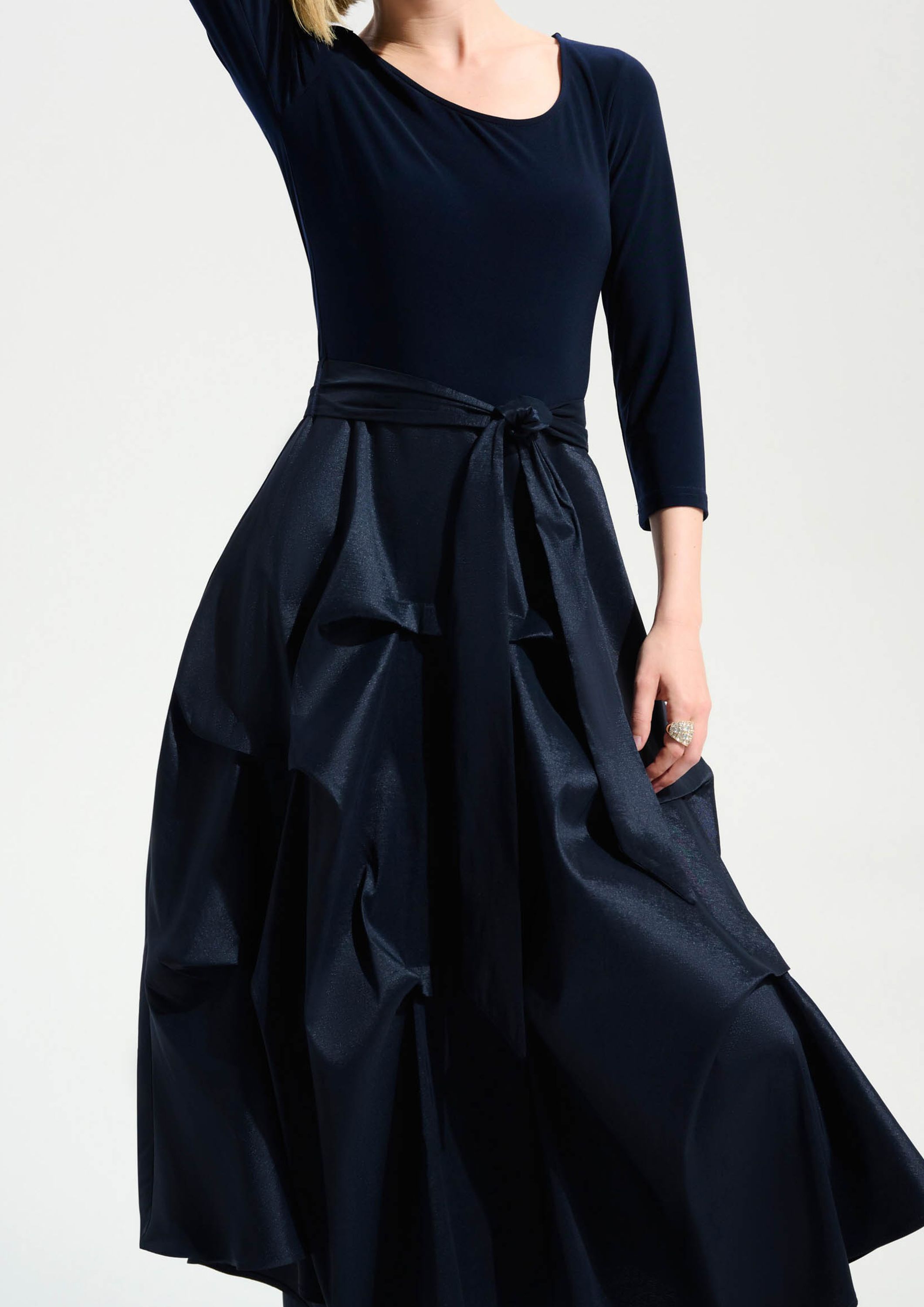 - Het model is 1.76m lang en draagt maat 38