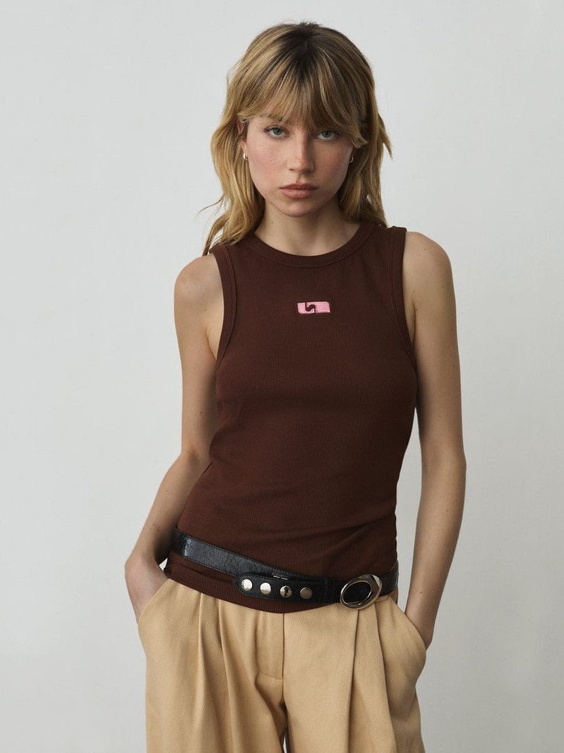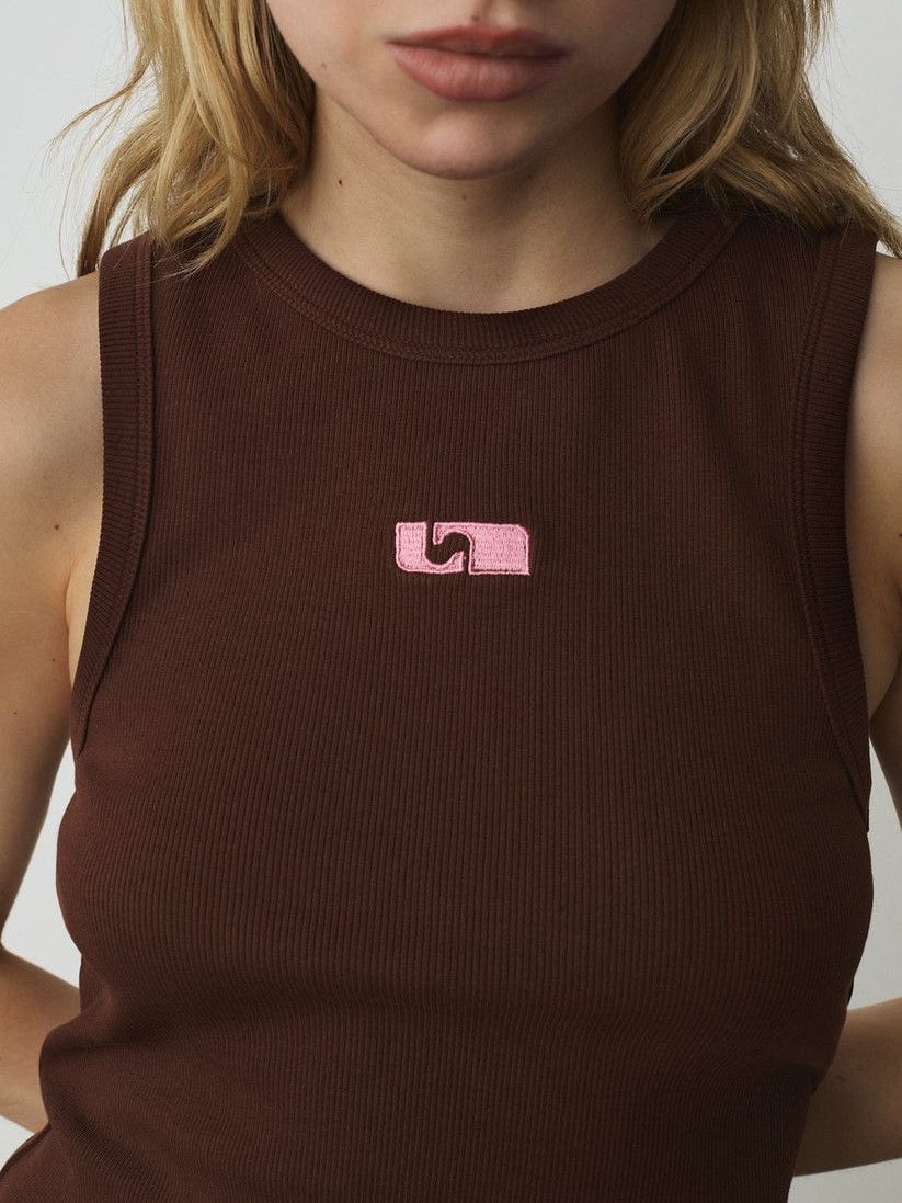 BROWN EMBROIDERED LOGO TANK TOP