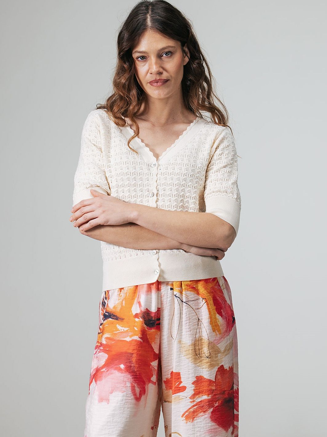- Het model is 1.76m lang en draagt maat 36