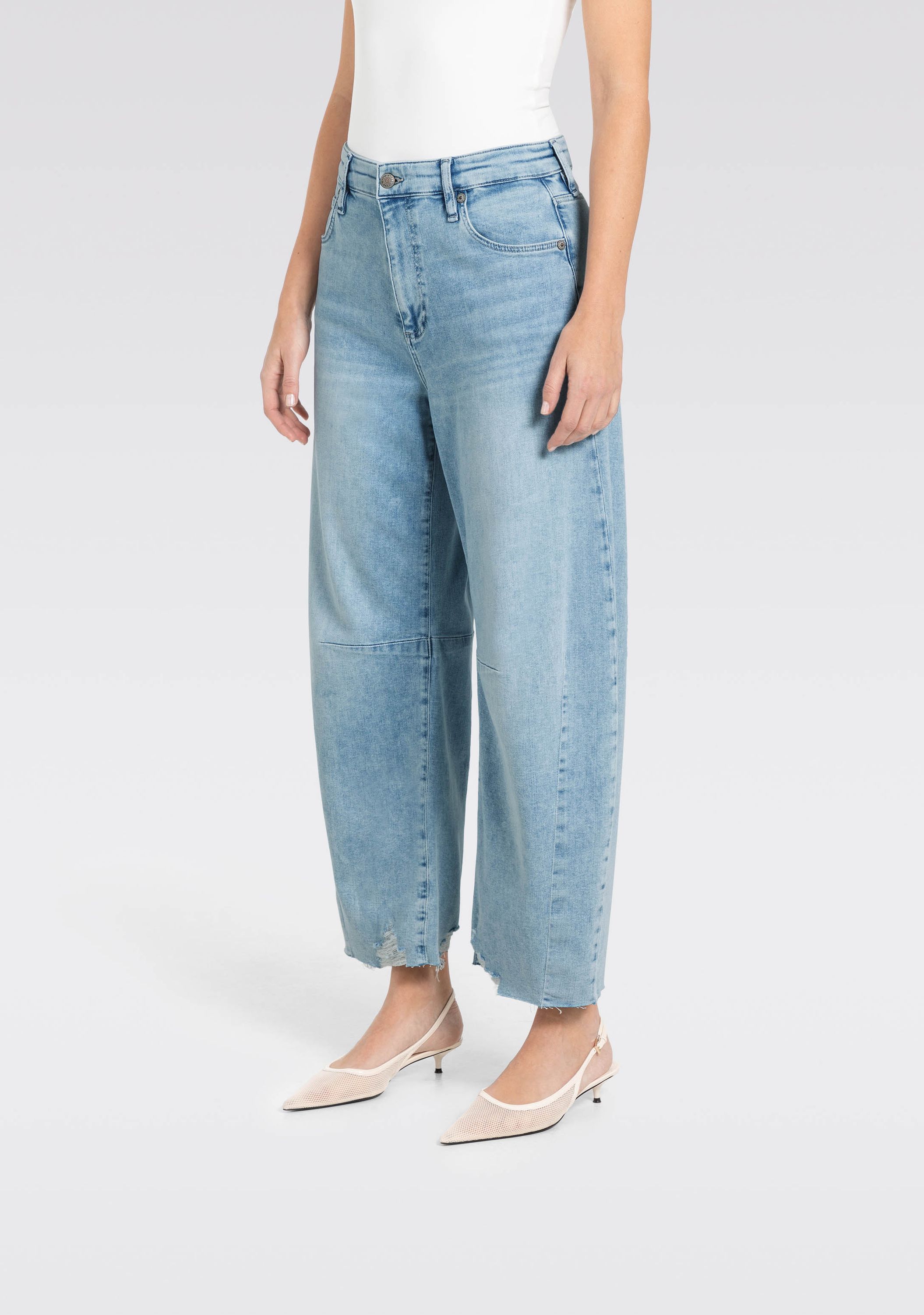 - De jeans heeft riemlussen en five pockets