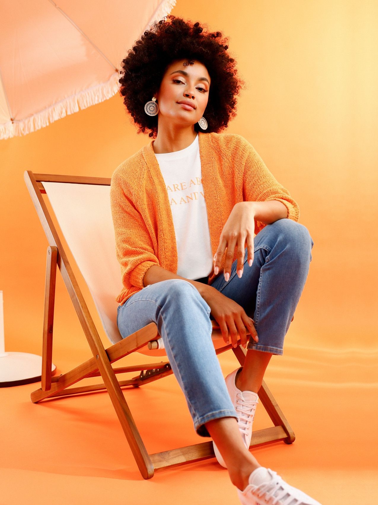 - Het model is 1.76m lang en draagt maat 38
