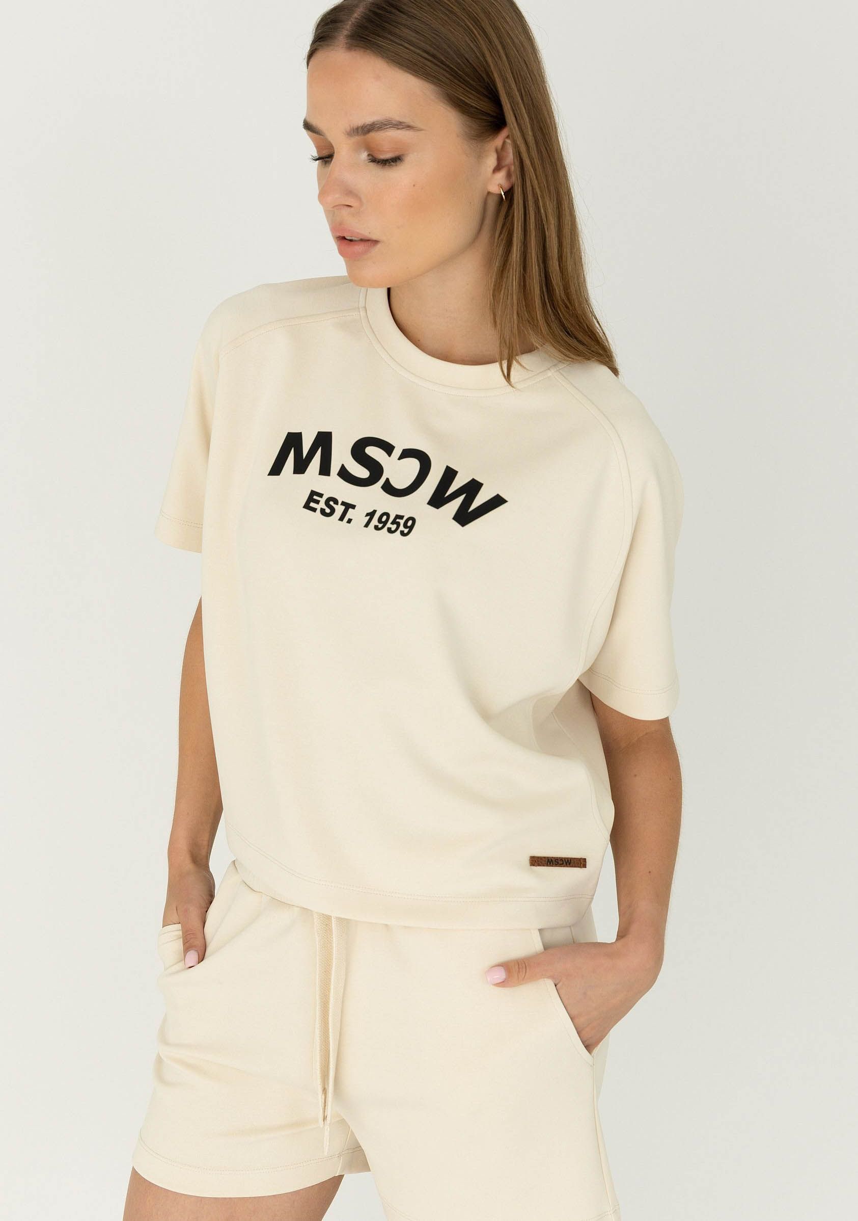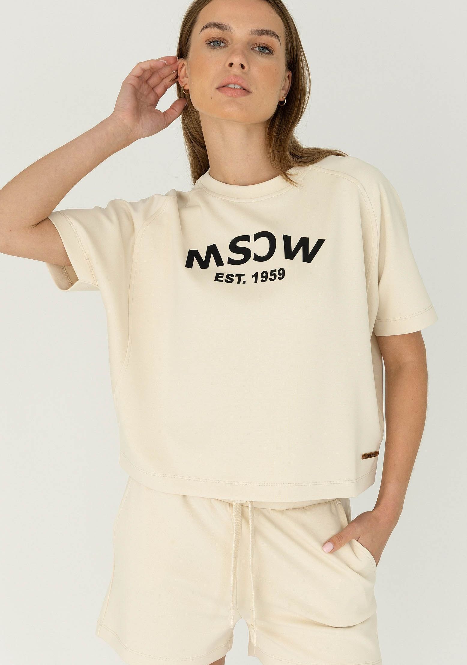 - Het model is 1.76m lang en draagt maat S