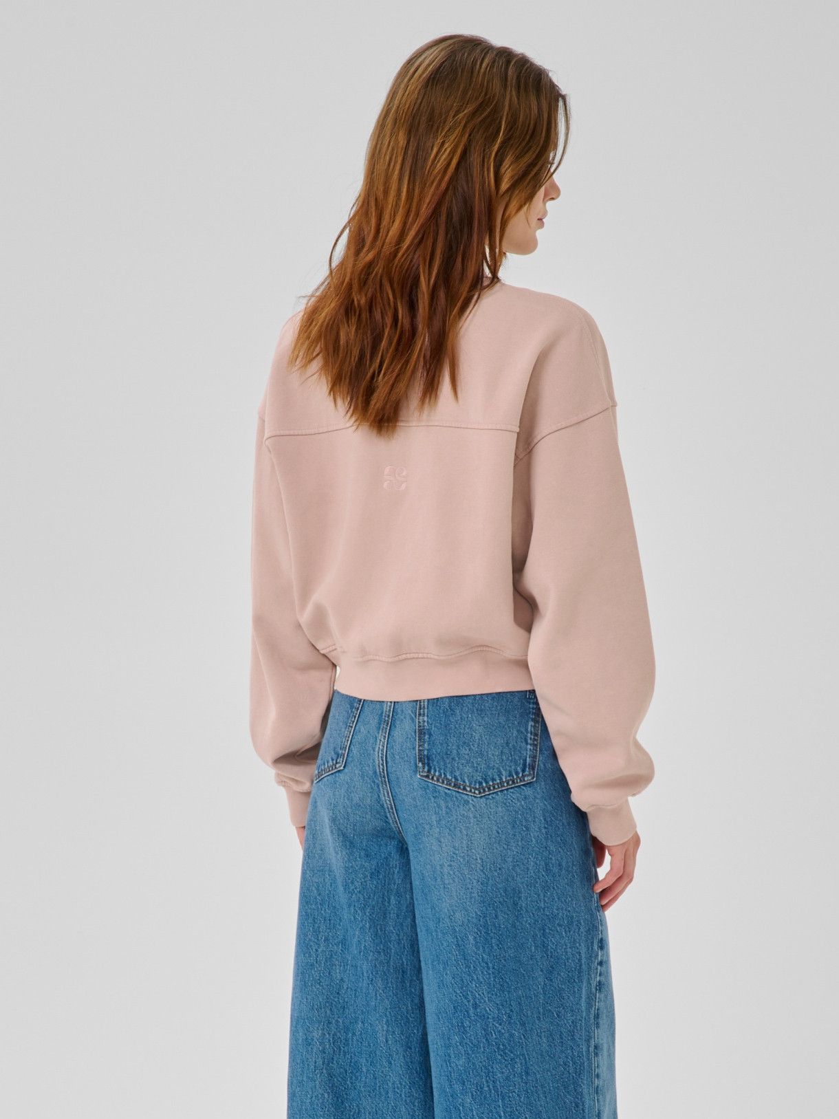- Het model is 1.76m lang en draagt maat S
