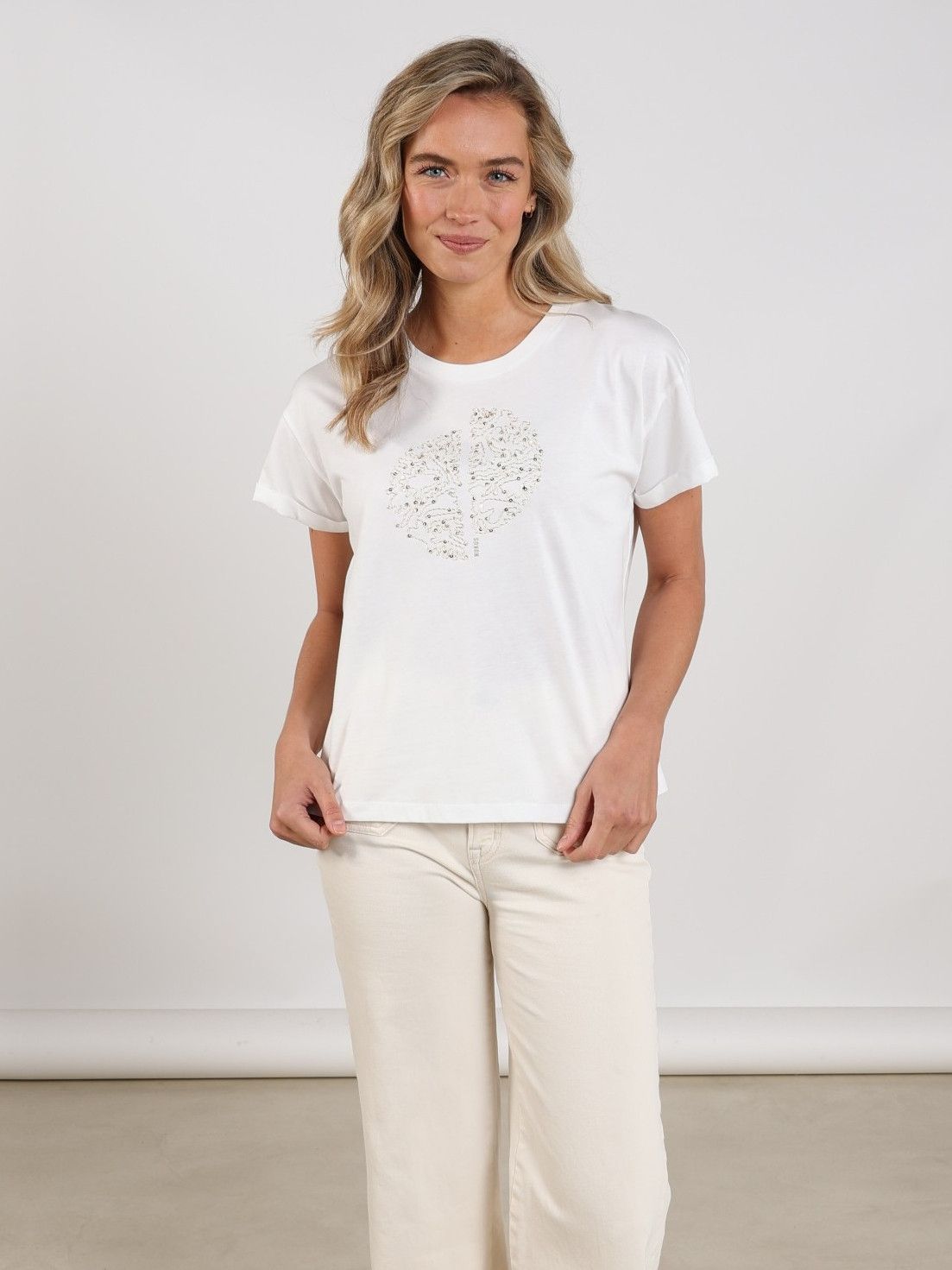 - Het model is 1.76m lang en draagt maat S