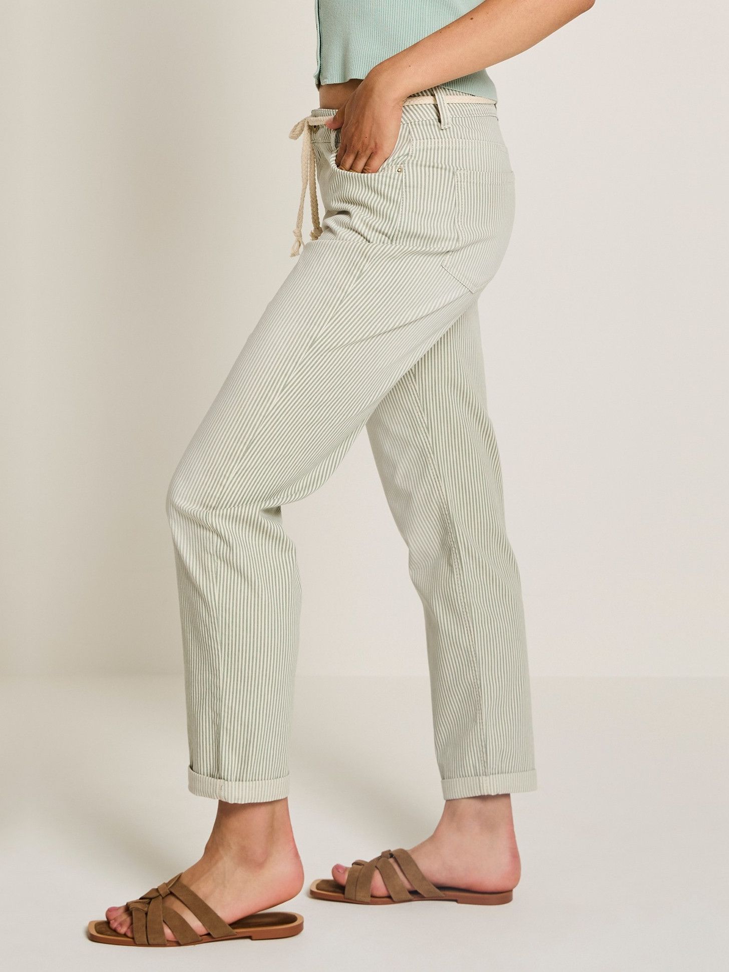 - Broek voorzien van five pockets en riemlussen