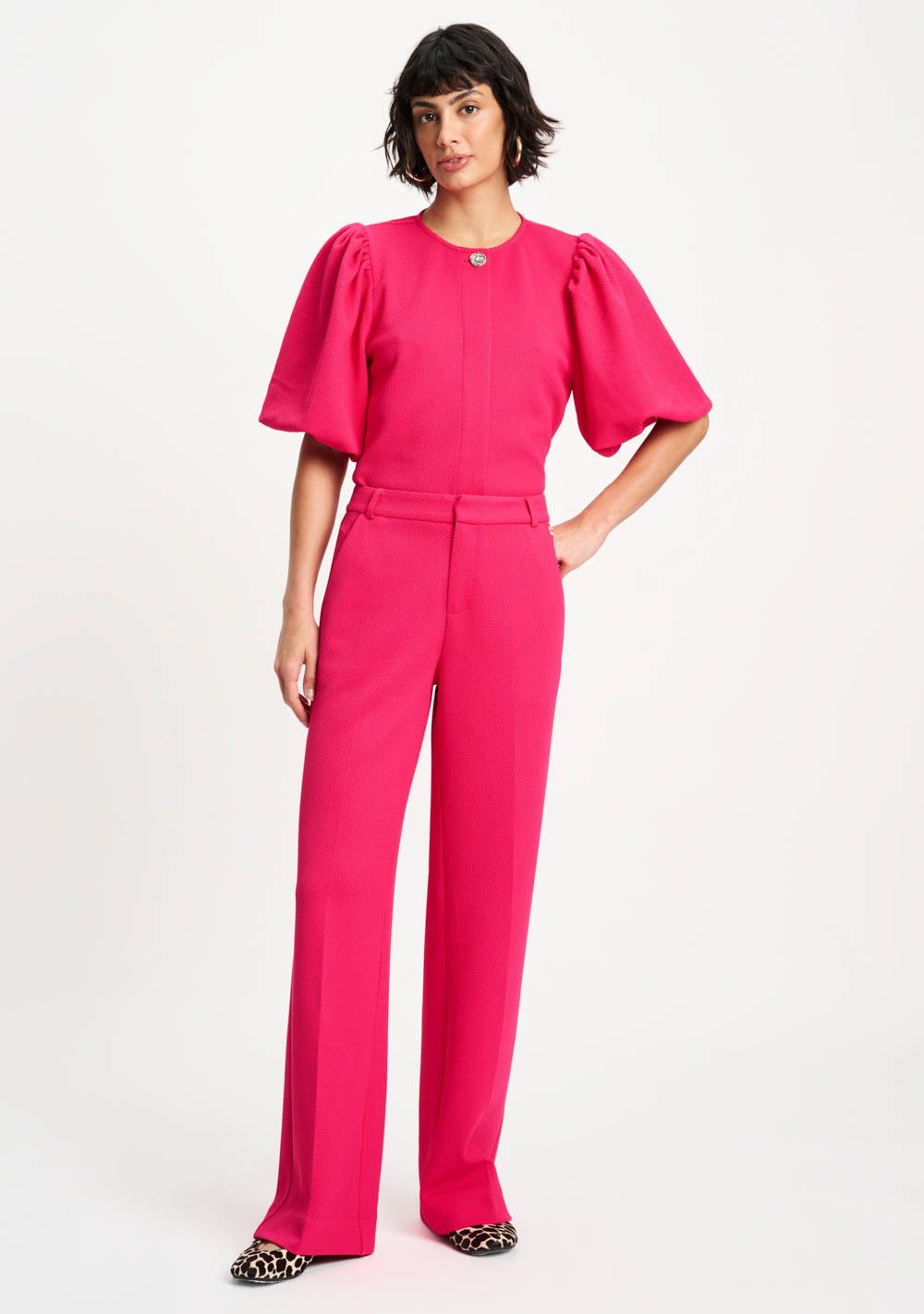 - Het model is 1.76m lang en draagt maat 36