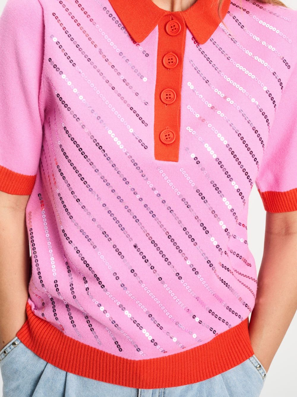 TOP - Polo Sequins Cheering Pink