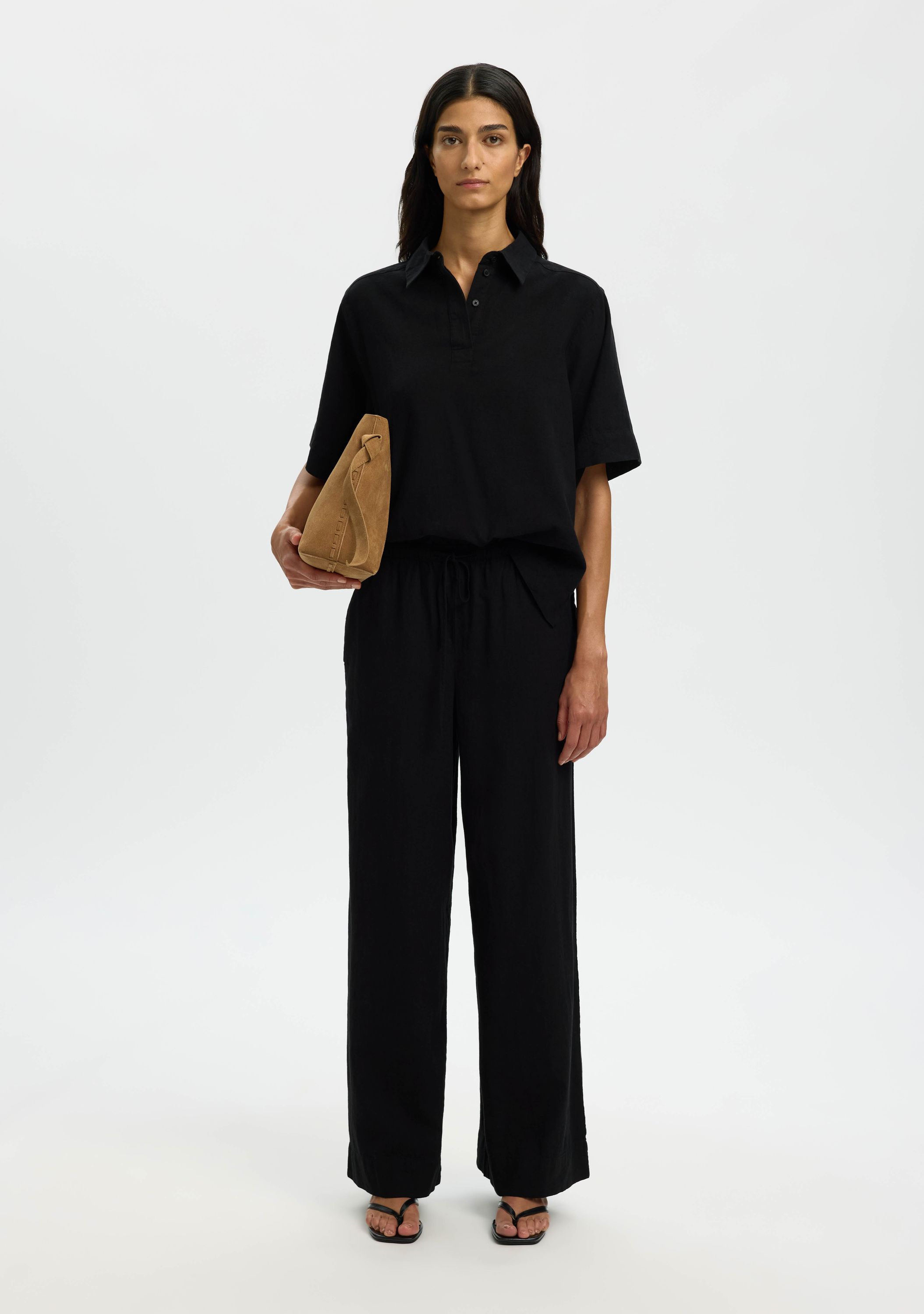 SLFLUISA MW WIDE LINEN BLEND PANT N