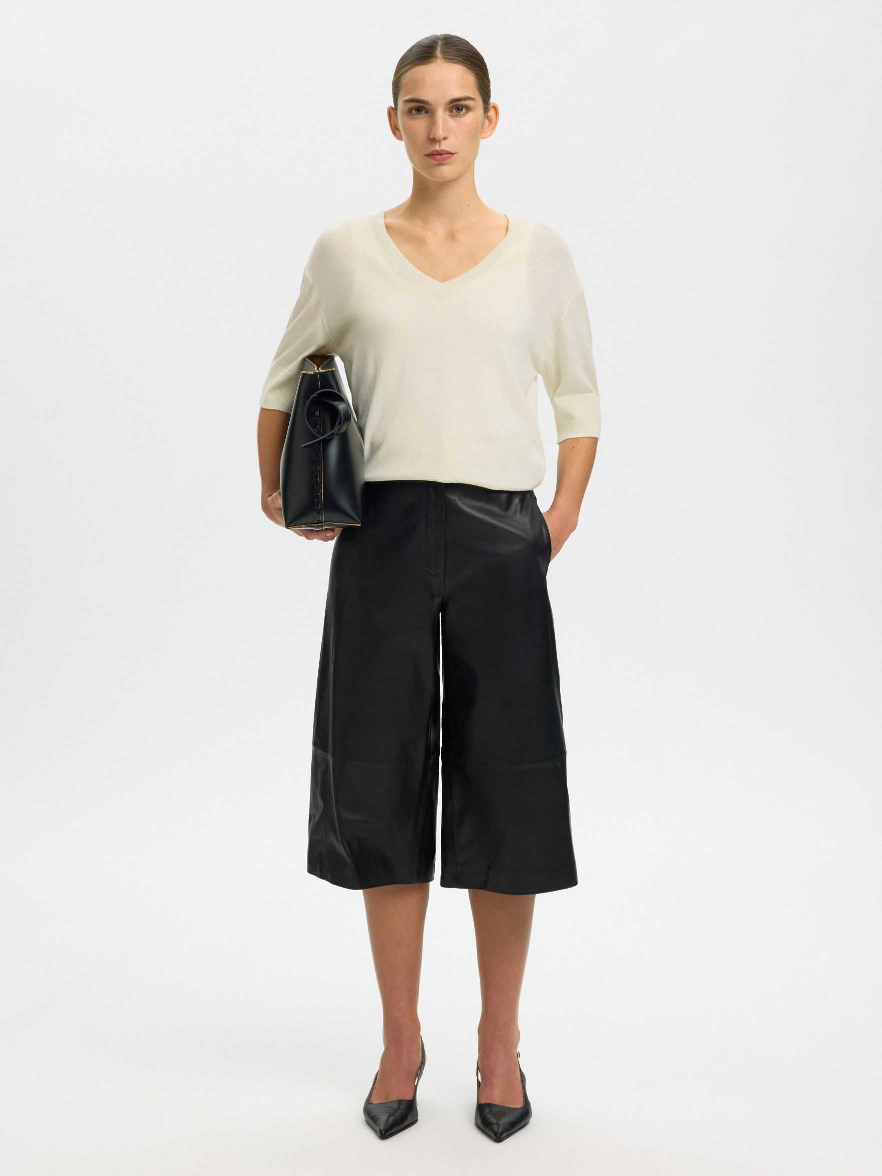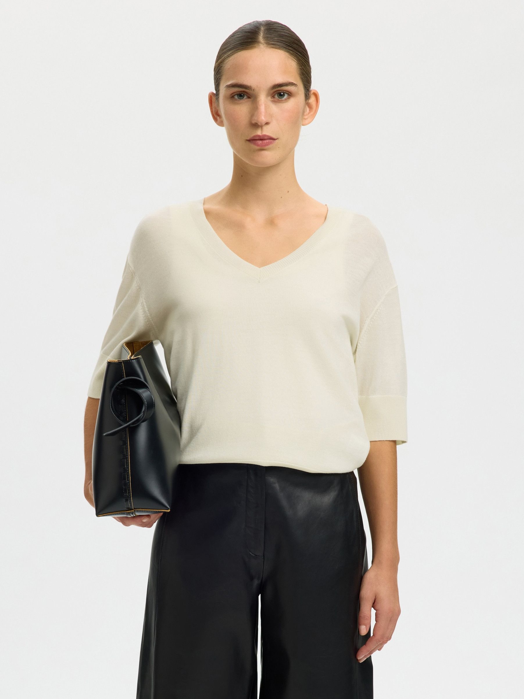 SLFTHEA SS KNIT MERINO V-NECK NOOS