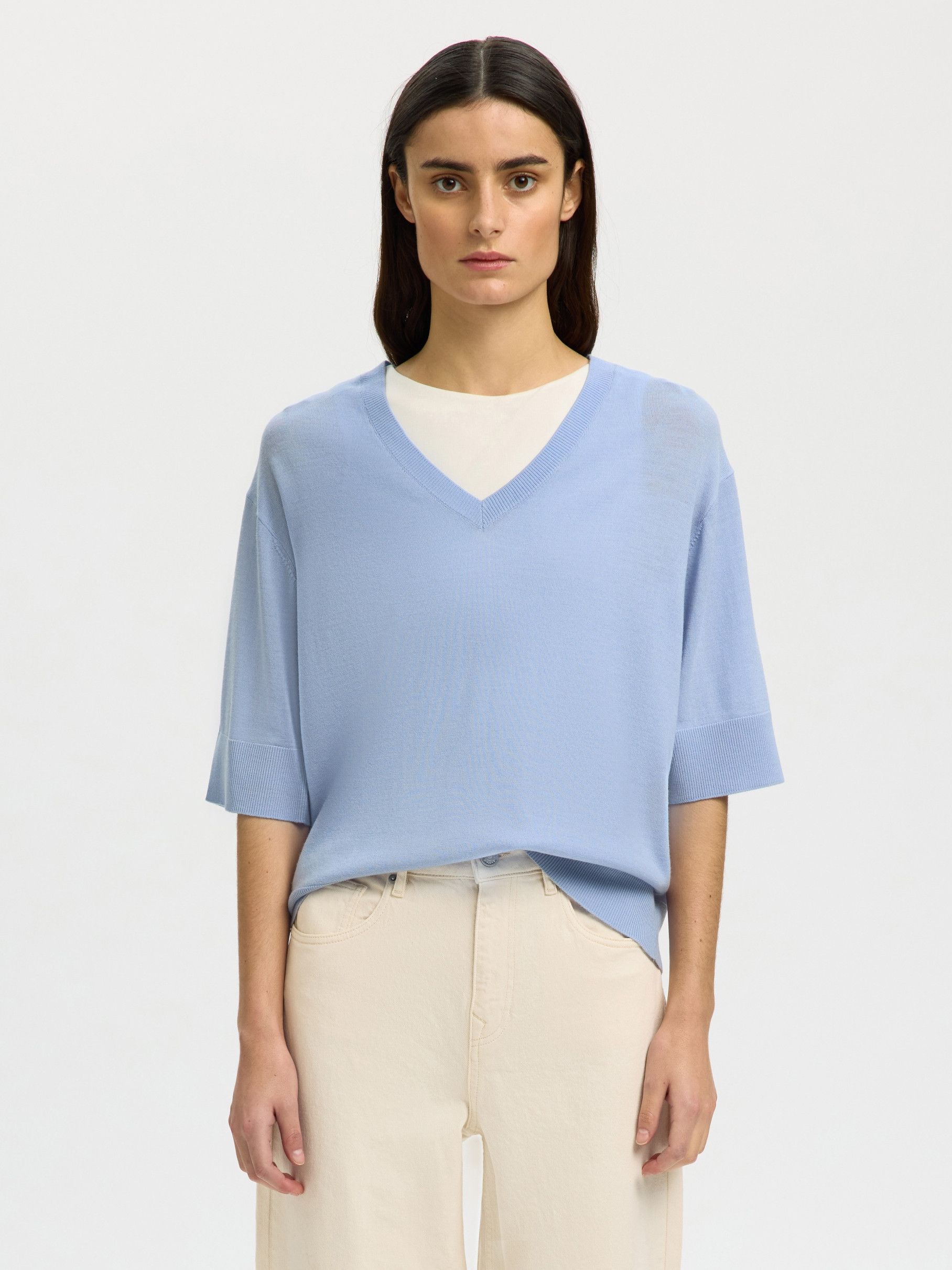 SLFTHEA SS KNIT MERINO V-NECK NOOS