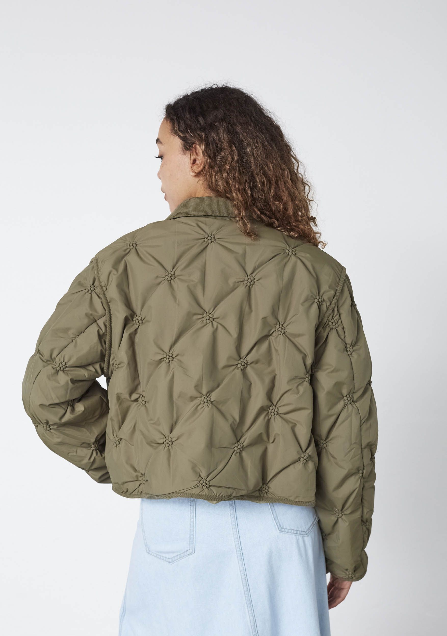 - Het model is 1.76m lang en draagt maat S