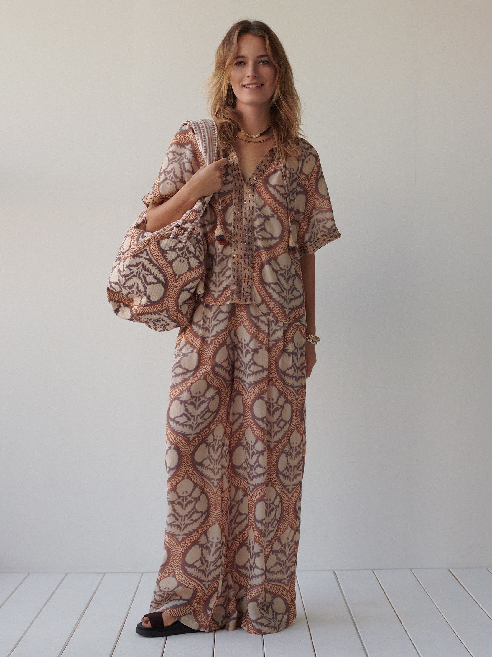- Het model is 1.76m lang en draagt maat 36