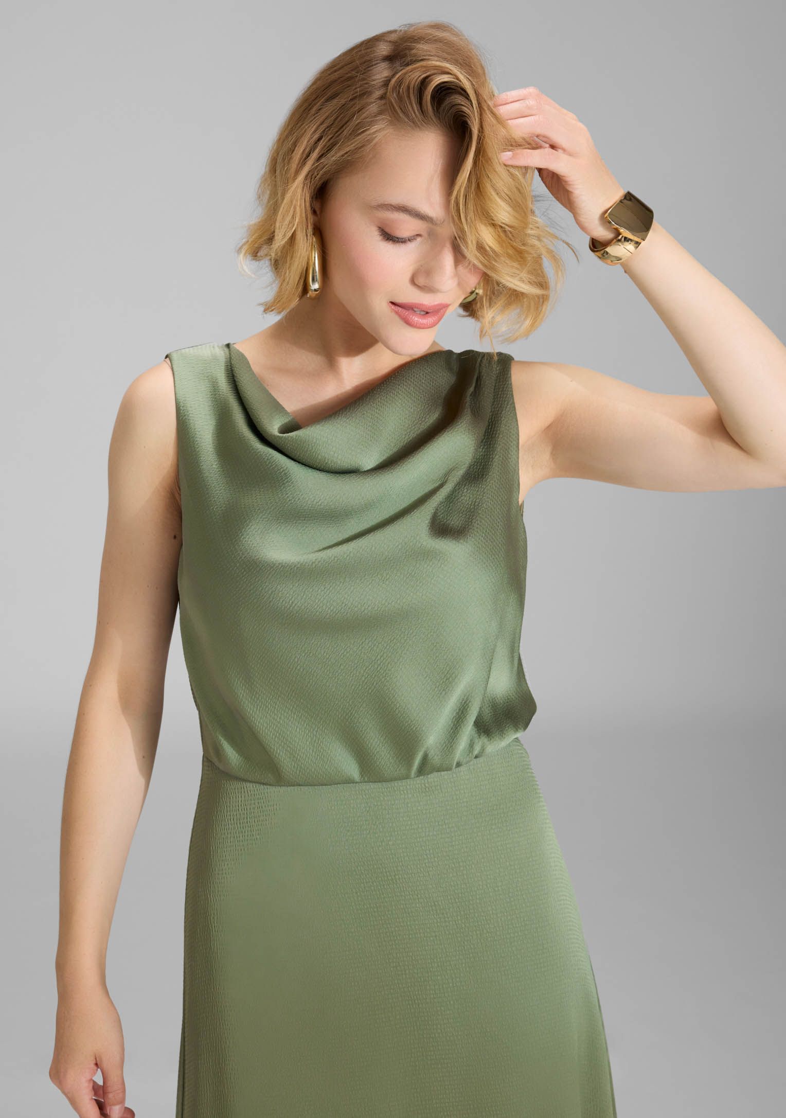 - Het model is 1.76m lang en draagt maat 38
