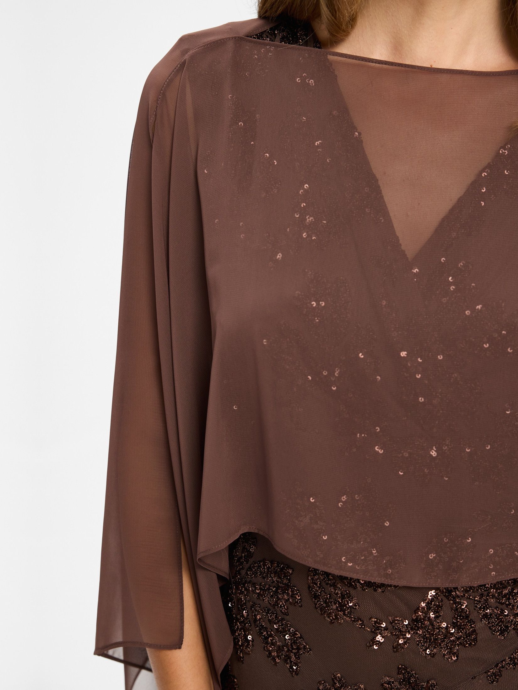 - Het model is 1.76m lang en draagt maat S