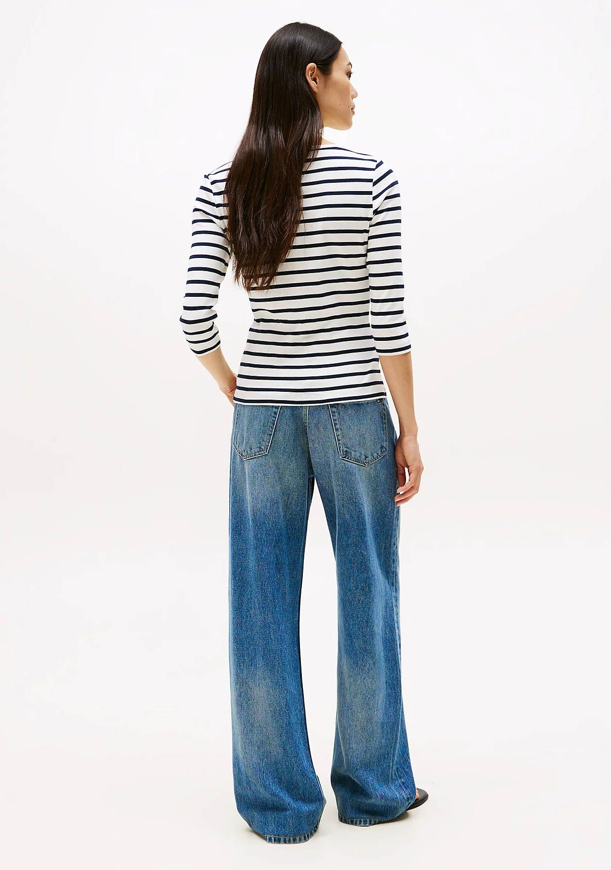 - Het model is 1.76m lang en draagt maat S