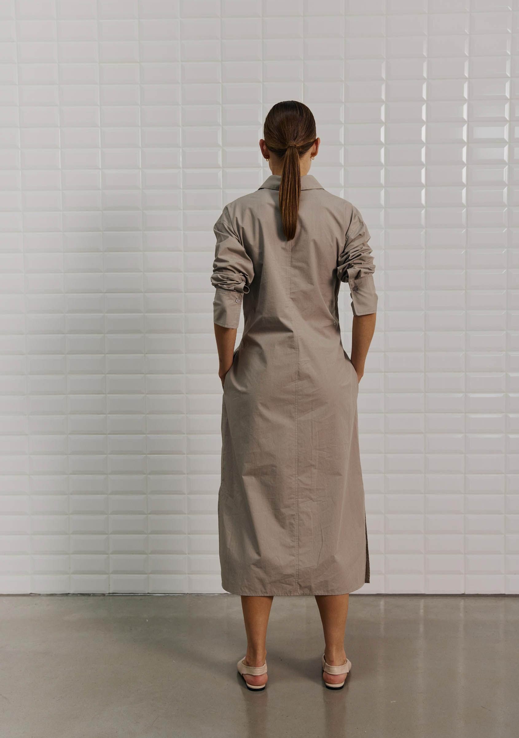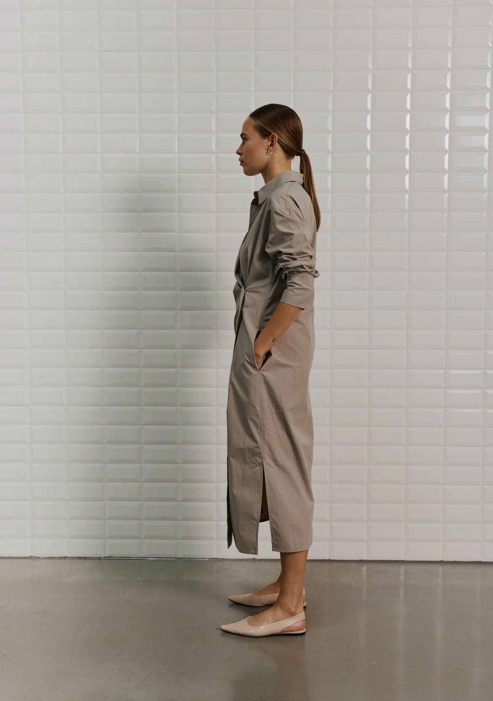 - De jurk is afgewerkt met een plooi accent