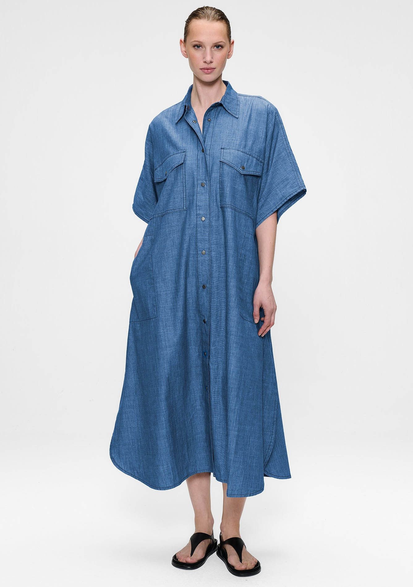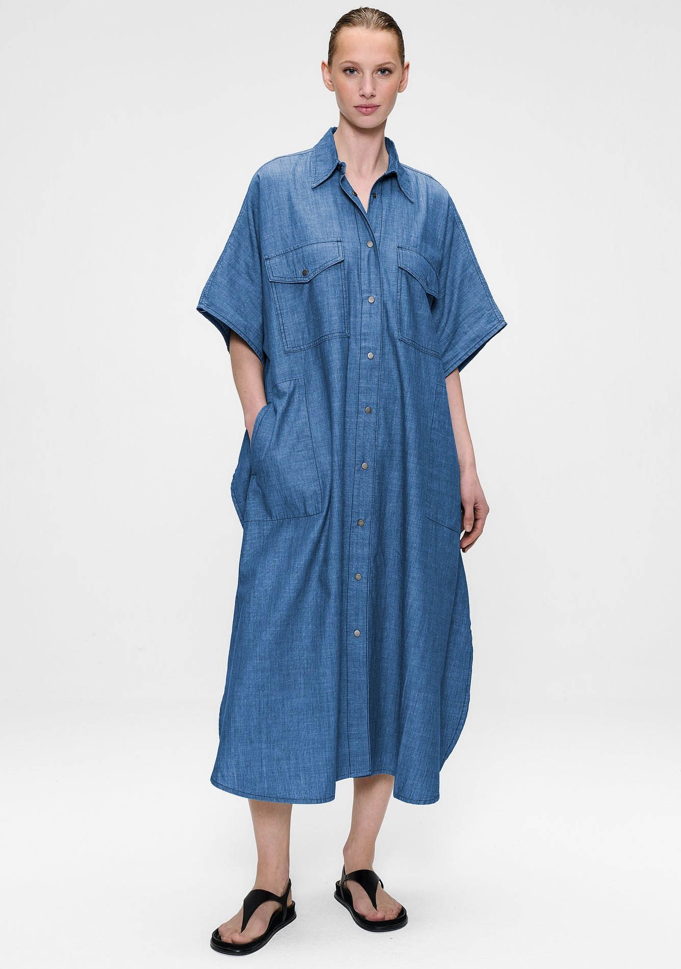 DENIM CHAMBRAY KAFTAN DRESS